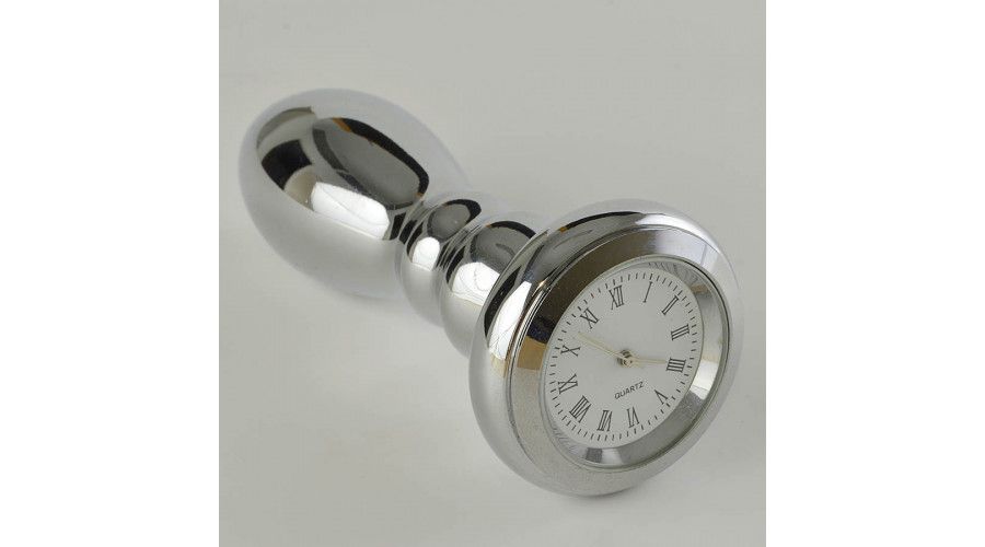 Анальная пробка с часиками, d 26 мм. Хром. Пробка упакована в бархатный мешочек. Общая длина 91 мм, рабочая длина 80 мм.