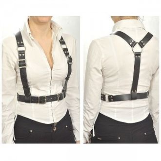 Портупея из натуральной чёрной кожи поможет раскрыть и подчеркнуть собственную сексуальность, что позволит почувствовать себя уверенно и непринуждённо. Легко регулируемые ремешки в паре с никелированной фурнитурой не доставят Вам неудобства и позволят подогнать изделие по фигуре. На данный товар скидки не распространяются.