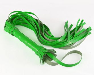 Гладкая лаковая плеть (флогер) изготовлена из искусственной кожи, цвет - салатовый. Состоит из жёсткой рукояти и ударной части из 24 хвостов. Общая длина плети 65 см. Используется в основном для разогрева (начало флогеляции), Идеально подходит для использования, как мужчиной, так и женщиной.