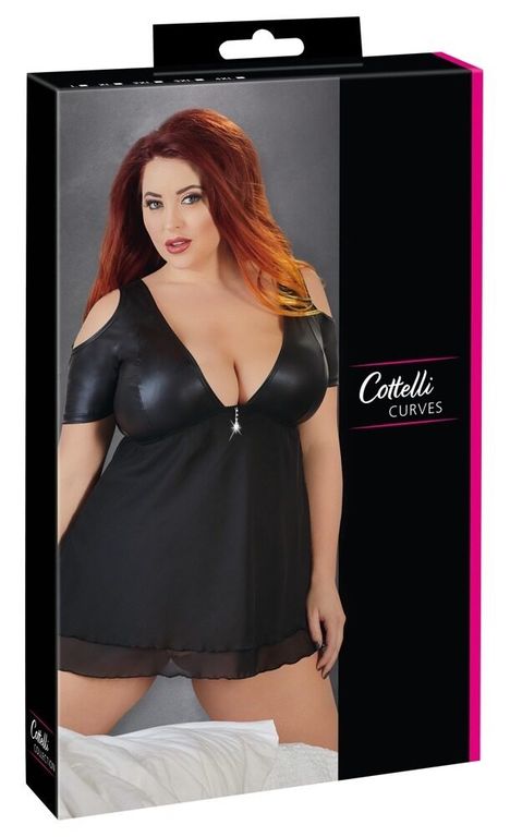 Бэбдолл с низким вырезом и открытыми плечами украшен стразами спереди и короткими рукавами. Верхняя часть выполнена из матового материала, а нижняя - из расклешенного двухслойного шифона.