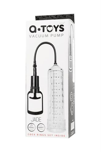 A-Toys Vacuum pump — серия помп, созданная для мужчин, которые стремятся к новым победам и точно знают чего хотя. Регулярное применение помп способствует увеличению размеров полового члена и усиливает эрекцию. Высокое качество материалов, используемых при производстве помпы, сделают применение изделия приятным и безопасным. Помпа оснащена мощным насосом. Кроме того, отличительной особенностью данной помпы является съемная мягкой вставка с рельефом в виде шариков, что позволяет дополнительно массировать пенис. Мин. диаметр 5, макс.диаметр 5,6