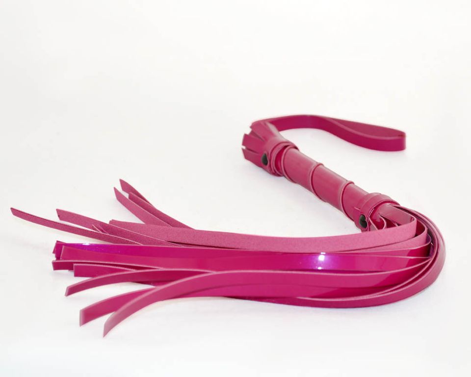 Гладкая лаковая плеть (флогер) изготовлена из искусственной кожи. Состоит из жёсткой рукояти и 20 хвостов. Общая длина плети 40 см. Используется в основном для разогрева (начало флогеляции). Идеально подходит для использования, как мужчиной, так и женщиной.