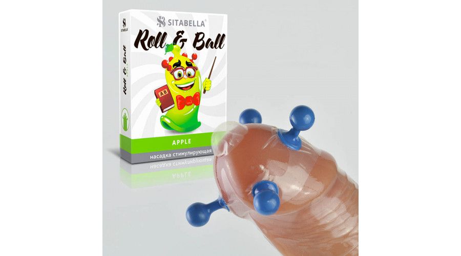Насадка стимулирующая Roll & Ball с четырьмя эластичными шариками изготовлена из натурального латекса. Шарики расположены вокруг накопителя, что создаёт дополнительную стимуляцию эрогенных зон. Насадка имеет яркий аромат яблока.