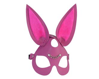 Маска изготовленна из нататуральной толстой кожи насыщенного розового цвета. Ушки декорированы искусственным мехом розового оттенка. Маска имеет резинку с регулятором размера.
